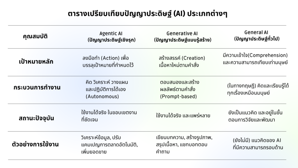 ตารางการเปรียบเทียบกับ AI ประเภทอื่น