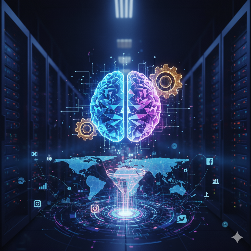 - การรับข้อมูล (Perception & Input): รวบรวมและดึงข้อมูลจากหลายแหล่งที่กระจัดกระจาย เช่น ระบบ CRM, Social Media, หรือฐานข้อมูลภายใน